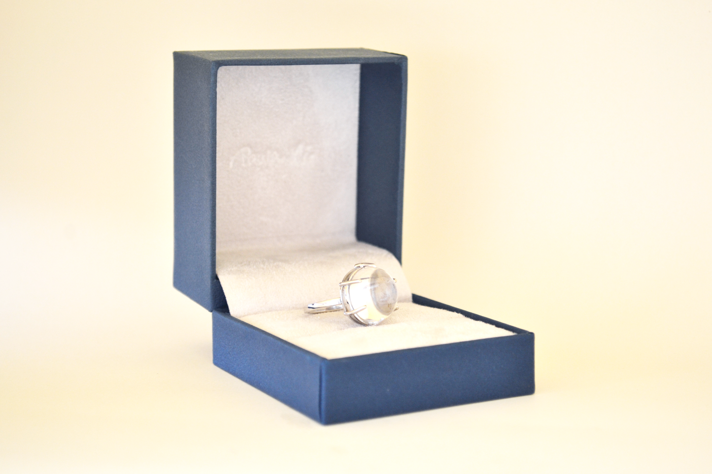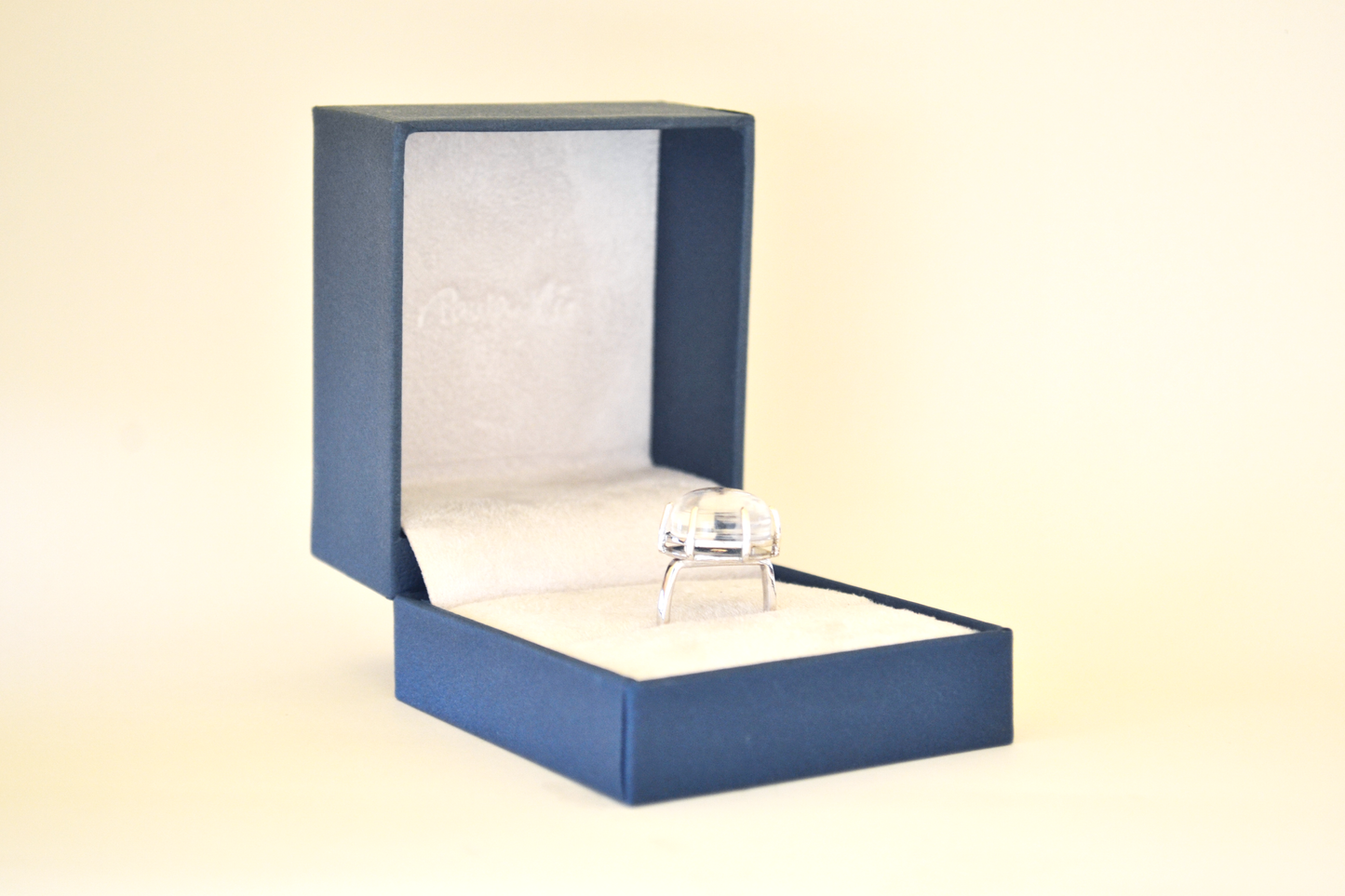 - A ideia deste anel surgiu da observação de um cabochão de quartzo cristal. “Cabochão” é como chamamos a lapidação como a do quartzo que vai nesta peça: côncava em cima e reta embaixo. Ao perceber que o cabochão de um límpido quartzo cristal funciona como uma lupa, busquei construir uma estrutura que permitisse, através de um jogo óptico, ampliar o elemento de destaque dessa peça: uma linda turmalina rosa que, a depender do ângulo do observador, se “esconde” embaixo do quartzo ou ganha mais destaque.