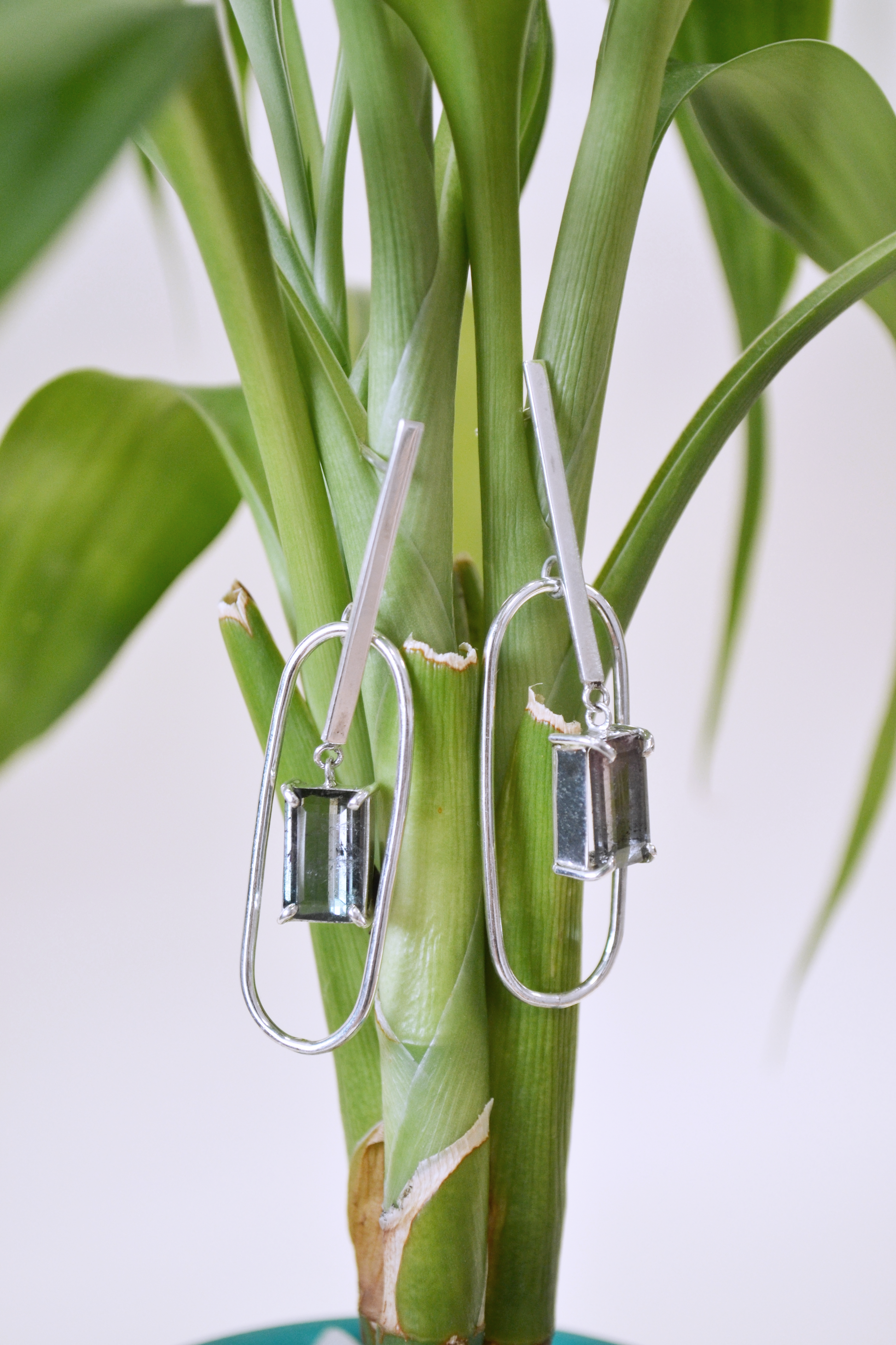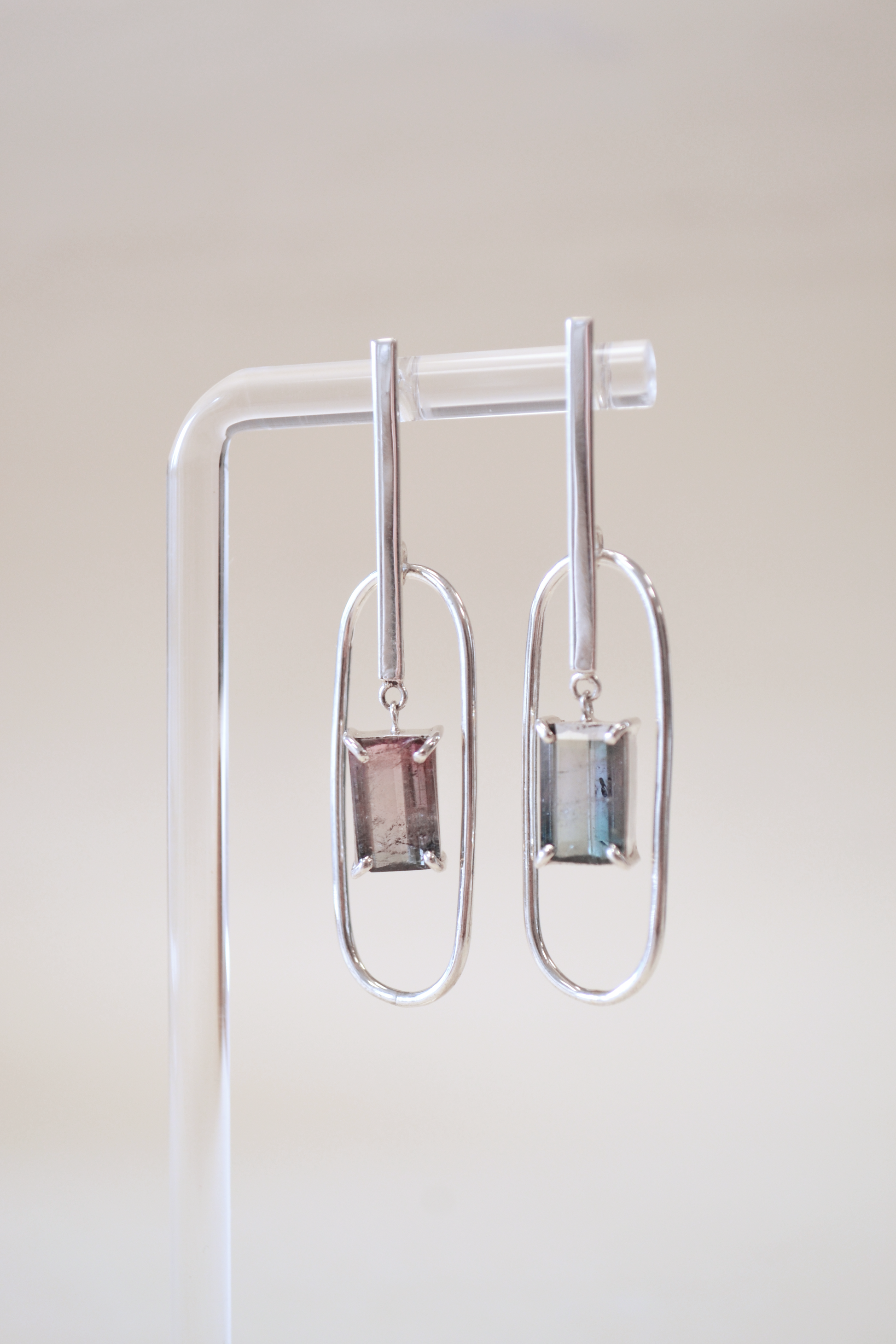 Este par de brincos recebem lindos exemplares de turmalinas bicolores, em uma criação única.
