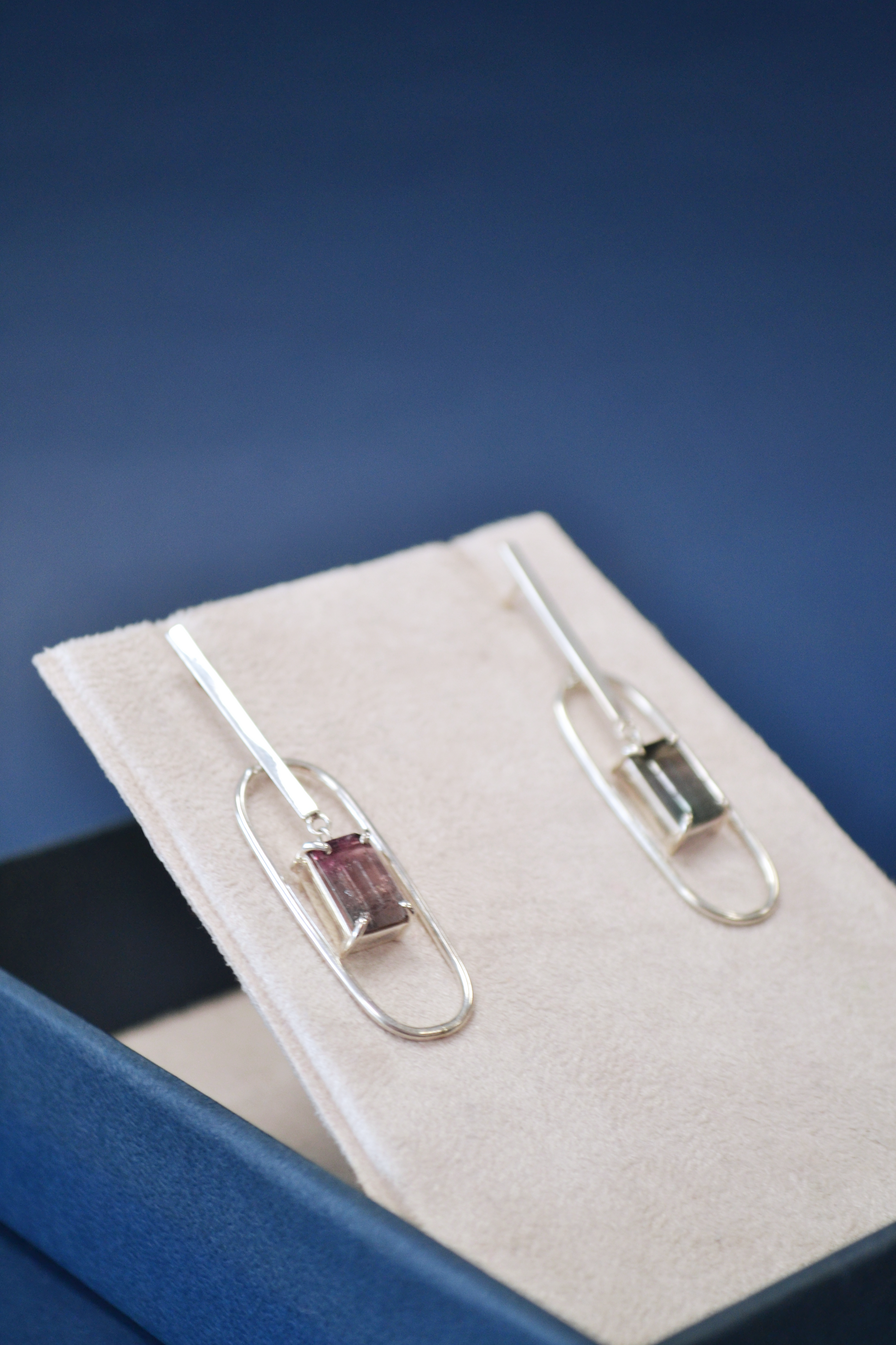 Pedras: turmalinas bicolores em tons de azul e rosa.