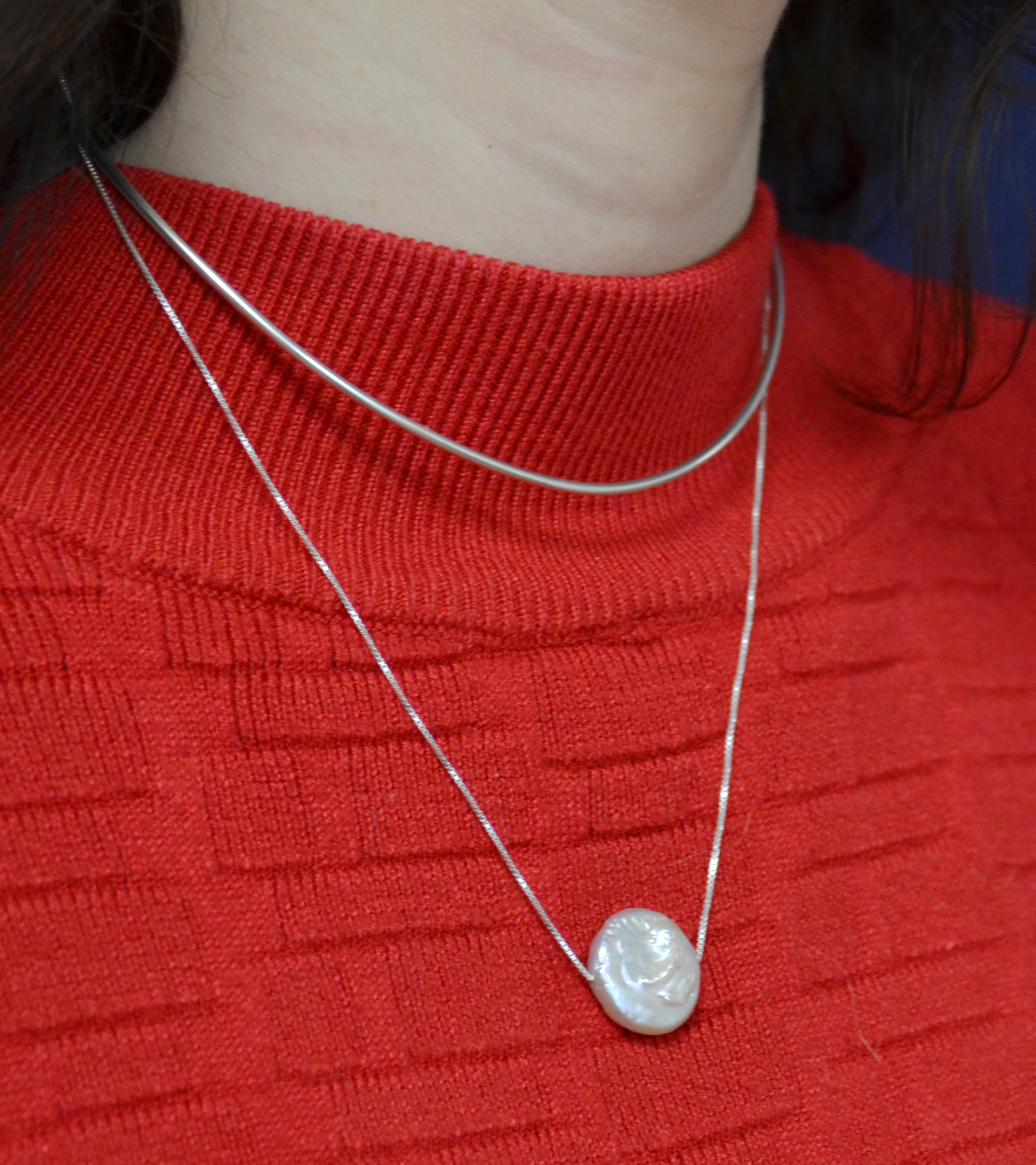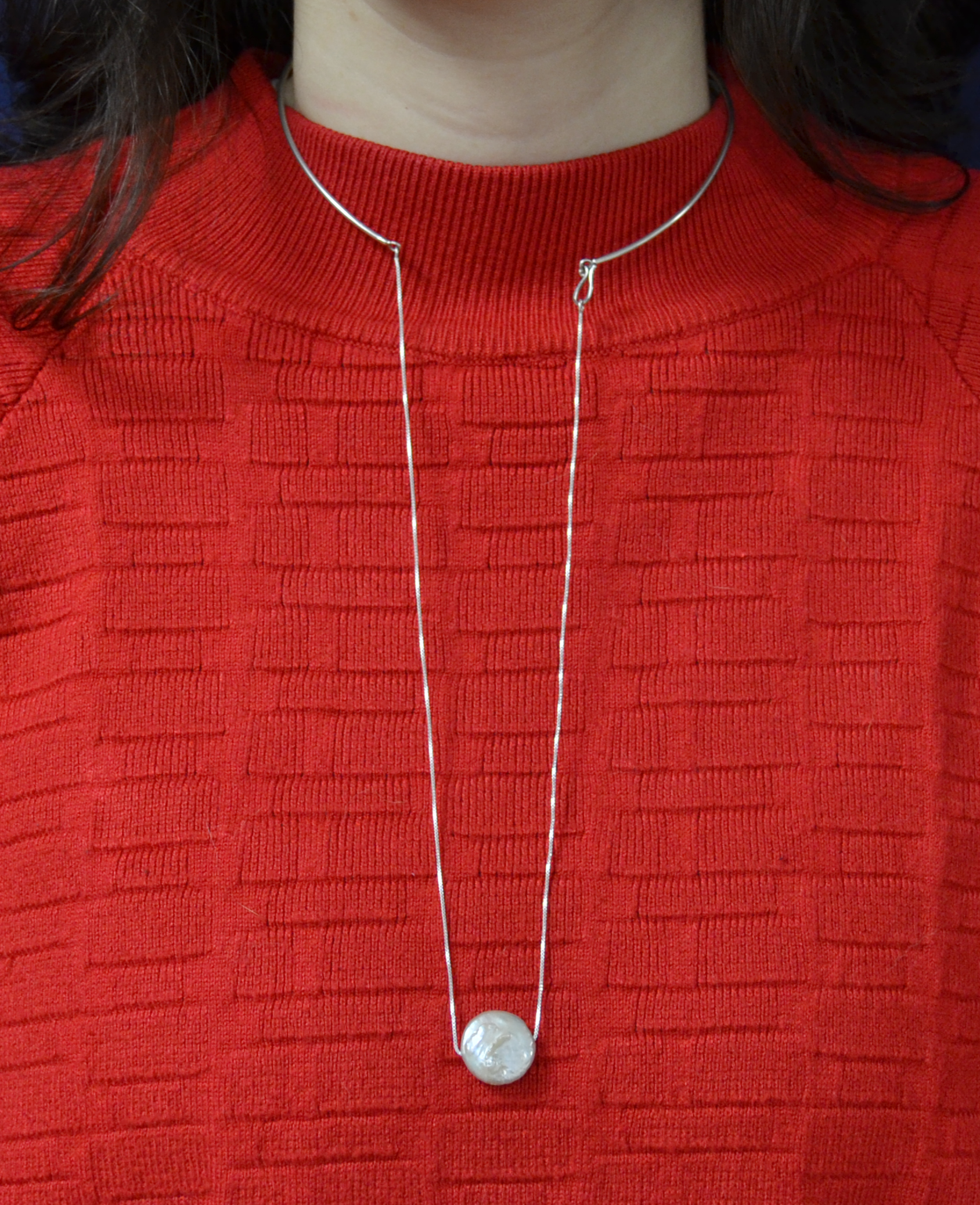 - Materiais: Gargantilha rígida e corrente veneziana em prata 925, pérola barroca natural.