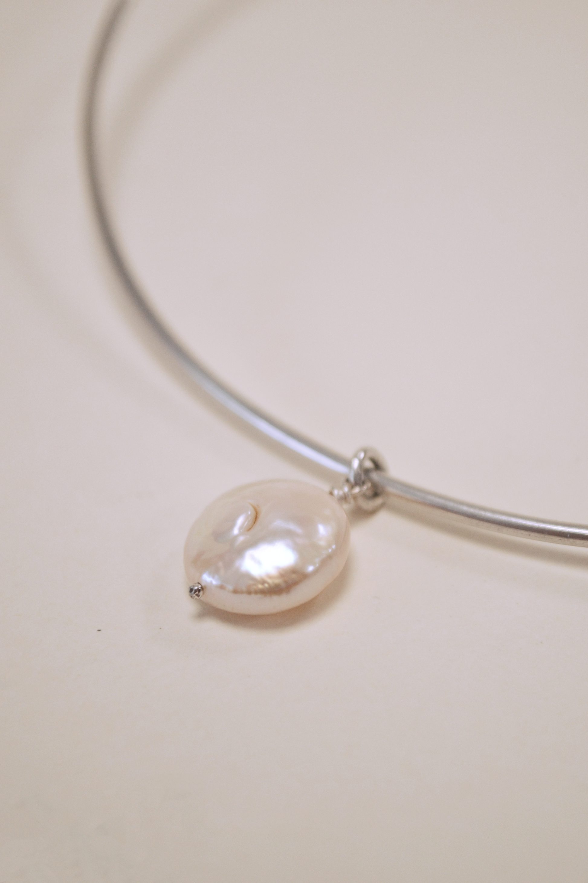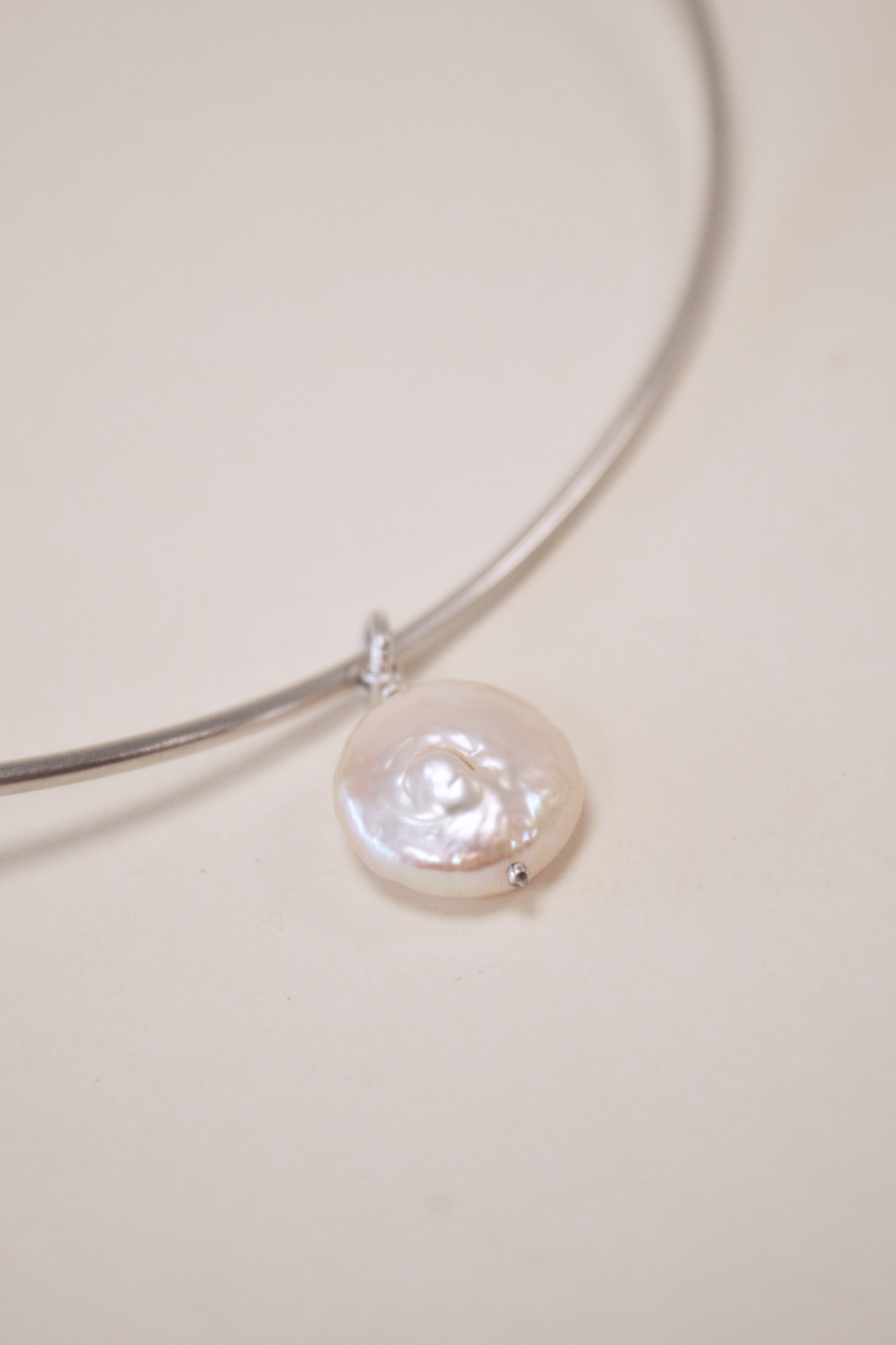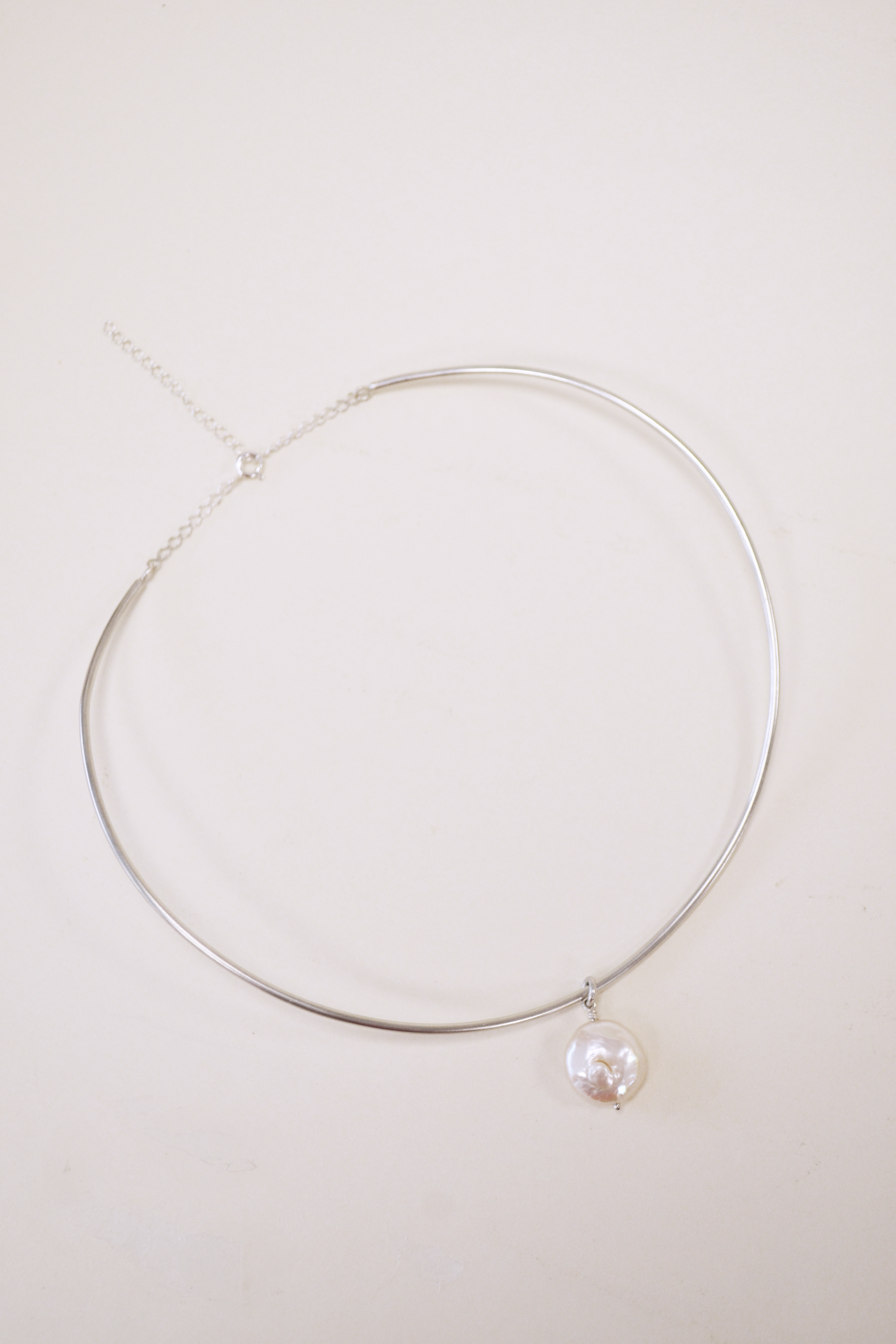 - Materiais: gargantilha rígida, corrente e fecho em prata 925, pérola barroca natural.