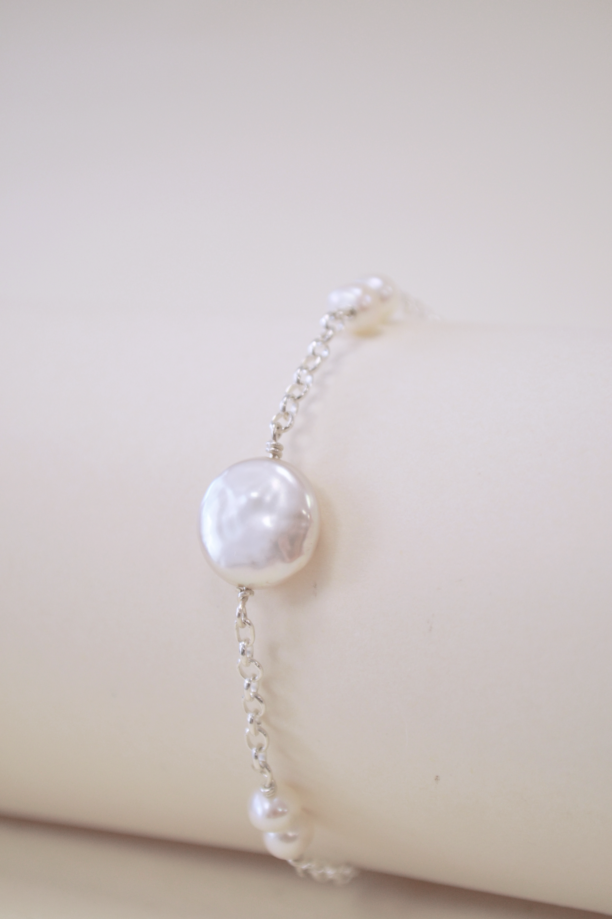 - Materiais: prata 925, 4 pérolas naturais de água doce (aprox. 5mm) e 1 pérola barroca natural (aprox. 10mm)